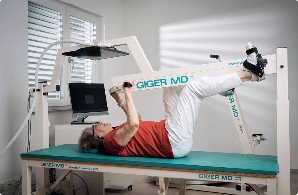 Nach einer kurzen Einlernzeit kann das Training mit den GIGER® MD® Therapieinstrumenten von jedem Betroffenen selbstständig zu Hause durchgeführt werden. Eine spezielle Software gibt Patienten Aufschluss über Fortschritte und hilft dabei, die Therapie kontinuierlich anzupassen.